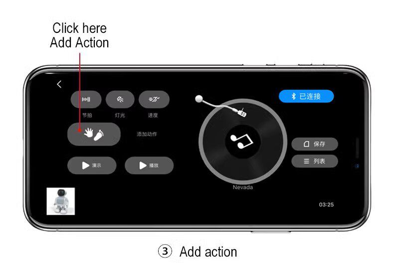 Just search for the “Robert” app in App Store or Google Play. Connect via Bluetooth in seconds — open app → tap “Connect Now” → select the robot → start dancing!